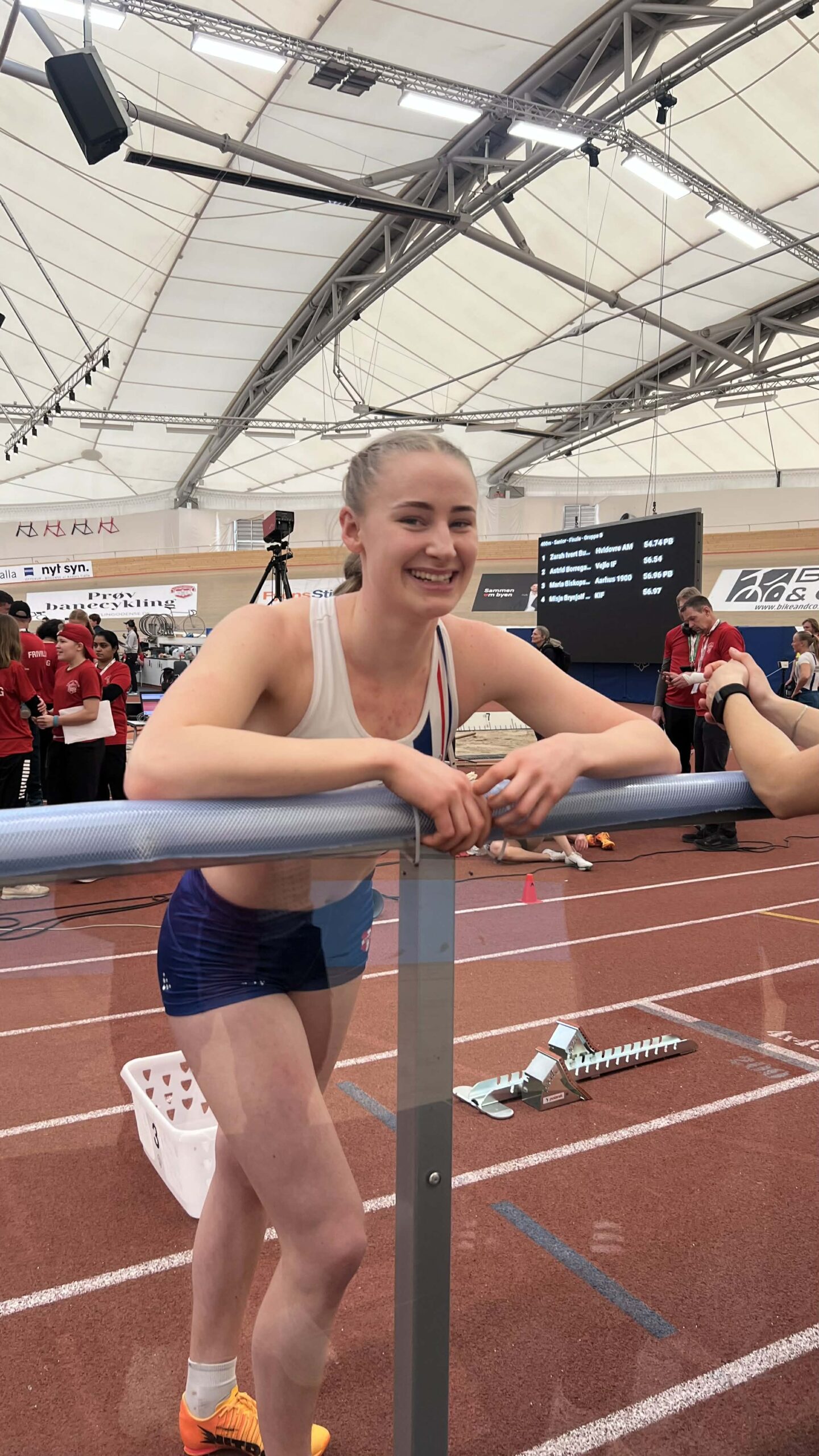 Danska meistaraheitið í innandura frælsum ítrótti varð hildið í Odense um vikuskiftið. Maria Biskopstø úr Treysti luttók í bæði 400 m og 800 m. Leygardagin rann hon 400 m, og í einari sterkari kapping betraði hon um føroyska metið, tá hon kom á mál við tíðini 56,96 sek. Hetta rakk til eitt sætta pláss í danska meistaraheitinum.